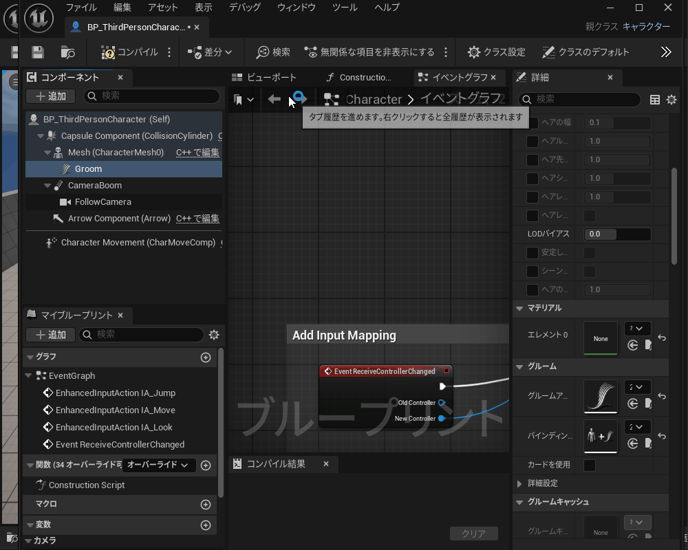 作成したグルームとバインディングを、サードパーソンのブループリントに紐づけます。