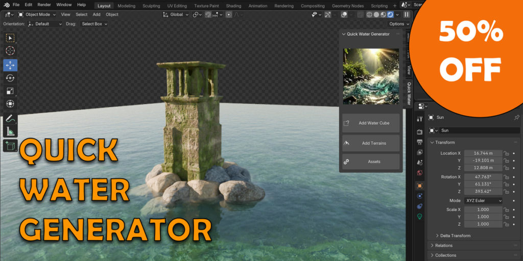 【アドオン紹介】Quick Water Generator – リアルな水辺をカスタマイズして再現!